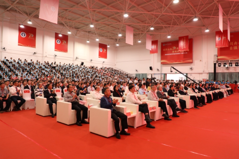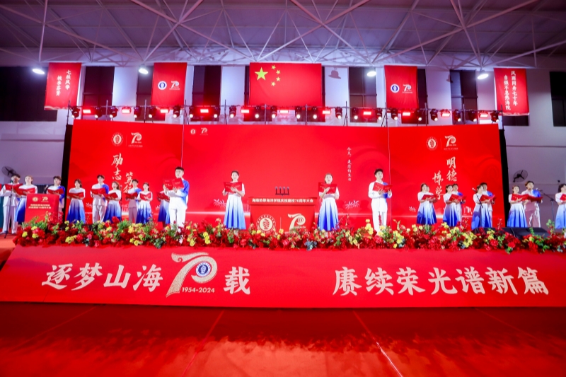 上午10时,海南热带海洋学院庆祝建校70周年大会在三亚校区体育馆隆重举行。全校师生员工、海内外校友和关心学校建设与发展的各界人士相聚线下线上,共襄盛会,同庆华诞。