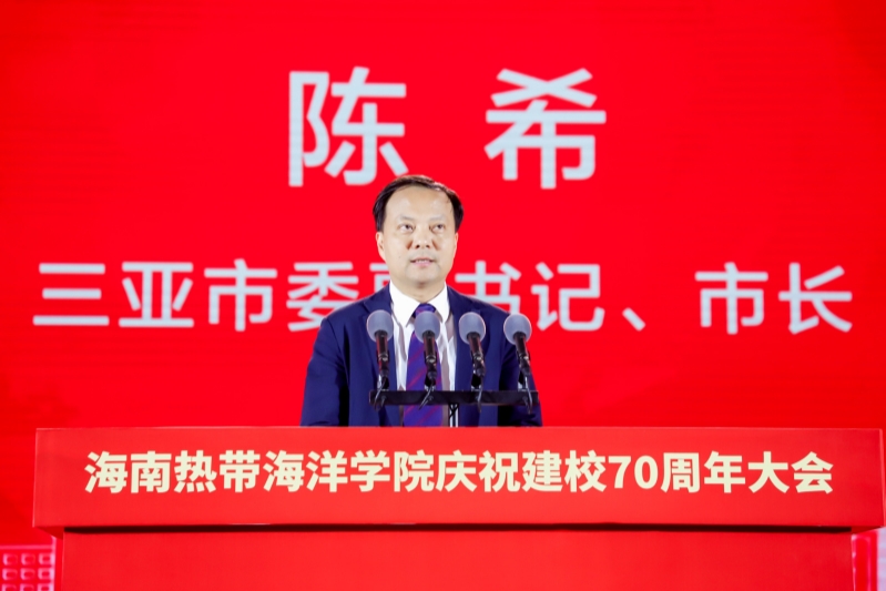 陈希代表三亚市委、市政府,向海南热带海洋学院全体师生以及广大海内外校友表示热烈的祝贺,他在致辞中指出,近年来,海南热带海洋学院围绕海洋强国、“一带一路”和海南自由贸易港建设国家战略,紧跟时代步伐,攀登科研高峰,聚力转型发展,创建海洋特色,在三亚城市建设、产业发展、科技创新、国际合作和社会服务等各方面充分发挥了积极作用。三亚将不遗余力地继续为海南热带海洋学院建设高水平海洋大学提供全方位的支持和帮助。希望海南热带海洋学院继续发挥优势,更深融入三亚高质量发展战略,更强助力三亚发展新质生产力,更好服务三亚经济社会发展。