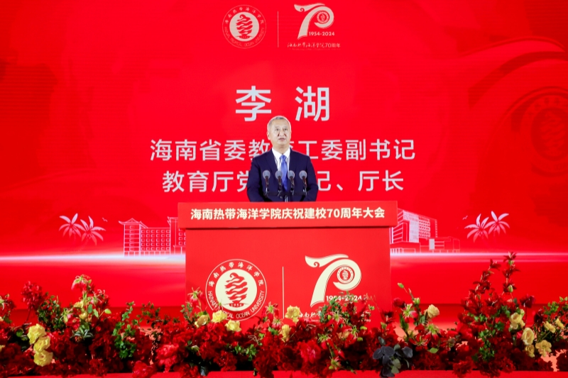 李湖代表海南省教育厅,向海南热带海洋学院建校70周年表示热烈祝贺,对学校70年来为教育事业作出的积极贡献给予充分肯定。他表示,海南热带海洋学院从五指山麓的中等师范,发展成为如今立足海南、面向全国、辐射世界的热带海洋高等学府,这辉煌成就的取得,是几代热海院人共同奋斗的结果,是琼中琼南高等教育发展的一个重要里程碑,见证着海南高等教育转型升级的历史。
