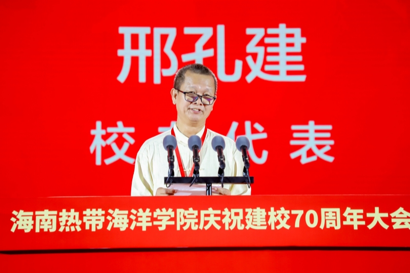 校友代表、1978级政史专业学生、原海南省作家协会主席邢孔建在发言中向母校致以最美好的祝福和最由衷的感谢。他通过昔日校园生活的回忆道出了对母校的热爱和作为热海院人的骄傲,他感恩母校的培养和陪伴,感叹时光的流逝,并寄语热海院学子将压力转化为动力,将使命转化为个人的自觉。