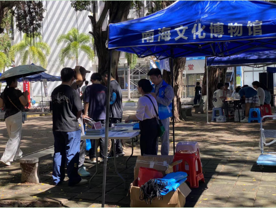 志愿者团队分别在学校第一食堂门口及博物馆展厅设立宣传点,向新生发放精心制作的博物馆主题宣传册,详细介绍各展区特色与馆藏精品。为增强互动性与趣味性,团队还围绕展品知识设计了有奖问答环节,吸引大量新生踊跃参与,在轻松氛围中普及海南地域文化与海洋知识,有效提升了新生对博物馆的认知与兴趣。