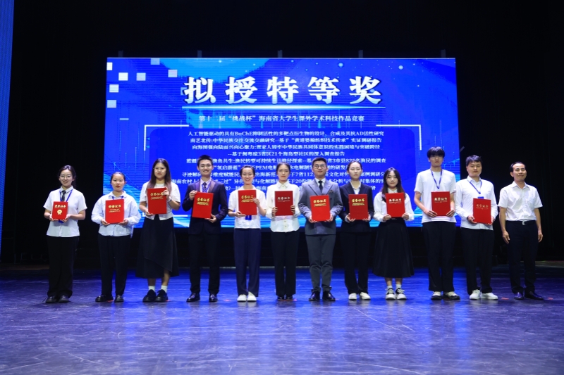 我校推报的30件作品全部入围决赛。经过激烈角逐,共获奖22件,《南艺北传:中华民族交往交流交融研究——基于“黄道婆棉纺织技术传承”实证调研报告》《向海图强 向陆而兴 向心聚力:疍家人铸牢中华民族共同体意识的实践困境与突破路径——基于闽粤琼3省区21个海岛型社区的深入调查报告》两件作品斩获特等奖;《“移”脉相连——海南省“教育移 民”下民族学生中华民族共同体意识研究》《乡村振兴背景下海南戏剧(琼剧)公共文化空间的社会功能转型社会调查报告》两件作品荣获一等奖。其中,特等奖作品《南艺北传:中华民族交往交流交融研究——基于“黄道婆棉纺织技术传承”实证调研报告》作为优秀项目,在颁奖典礼上进行了展示。我校参赛作品紧密围绕加快培育发展新质生产力及社会发展领域的重大现实问题,提出了切实可行的研究成果与解决方案,充分展现了我校学子敢闯会创的精神风貌和解决实际问题的科研创新能力,体现了学校以赛促教、培养学生科学精神和科学态度的成效。