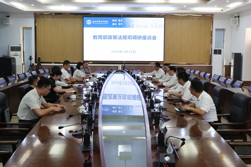 教育部政策法规司行政协调处处长刘博、宏观政策处副处长张宝文、综合研究处四级调研员李响;省教育厅党组成员、副厅长孟梓岩,政策法规处(行政审批办)处长、一级调研员佘家鼎,政策法规处(行政审批办)一级主任科员王涛;校党委副书记符成彦,校党委常委、副校长穆军、唐旭、那广水,以及学校相关职能部门负责人参加调研。